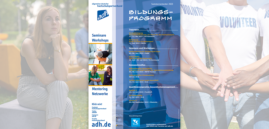 Einen besonderen Höhepunkt stellt die adh-Perspektivtagung dar, die am 11. und 12. Mai 2023 in Konstanz zum Thema "Gesundheitsförderung, ein Thema für den Hochschulsport" stattfindet. Die Anmeldung ist noch bis zum 29. März 2023 möglich.