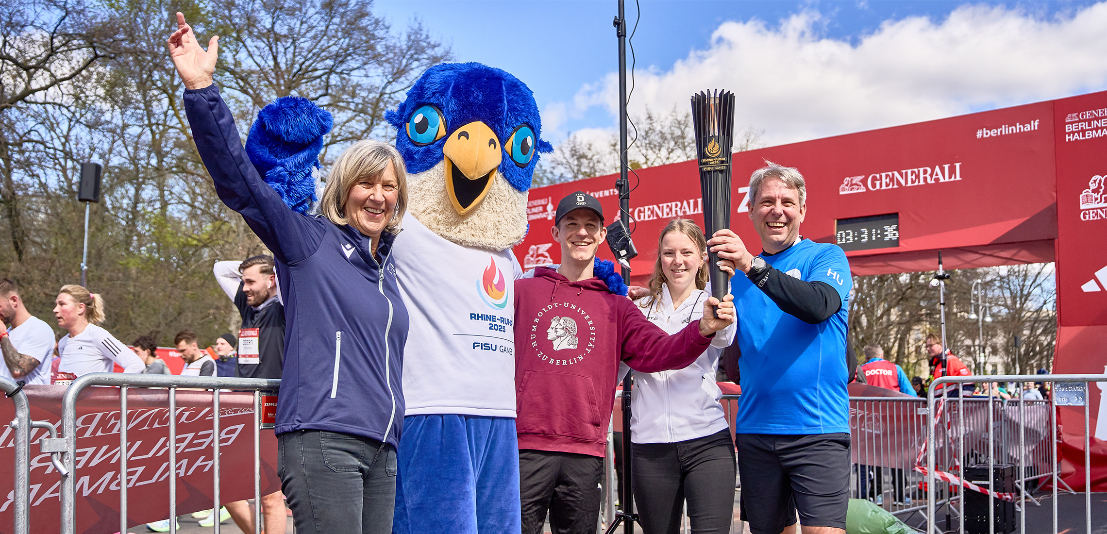 Der Fackellauf fand seinen Höhepunkt beim Berliner Halbmarathon am 6. April. Die Humboldt-Universität übernahm das letzte Teilstück, das zunächst Vizepräsident Prof. Dr. Niels Pinkwart (HU) zurücklegte. Er übergab die Fackel an den Geher und Olympiateilnehmer Leo Köpp, der an der HU studiert. Beim Zieleinlauf des Halbmarathons nahm Svea Thamsen, Studentische Vorsitzende des Allgemeinen Deutschen Hochschulsportverbands (adh), die Fackel entgegen.