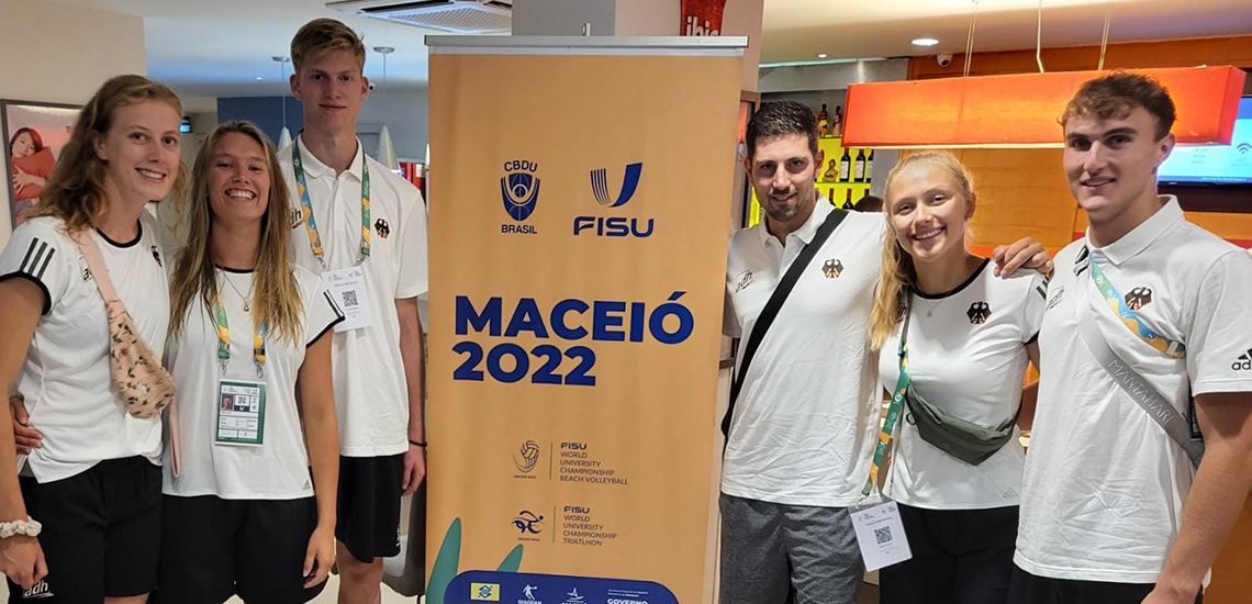 Im Viertelfinale mussten die beiden Männerteams der Deutschen Studierenden-Nationalmannschaft gegeneinander antreten, ein Halbfinalist war somit schon sicher. Am Ende setzen sich Just und Wüst durch. Bei den Damen gewannen Christ und Grüne ihr Viertelfinale gegen die Gastgeberinnen aus Brasilien. Im Halbfinale unterlagen die beiden Teams knapp. Das Damenduo musste sich auch im Spiel um Platz drei geschlagen geben, wohingegen sich Just und Wüst in ihrem Bronzematch durchsetzen konnten.