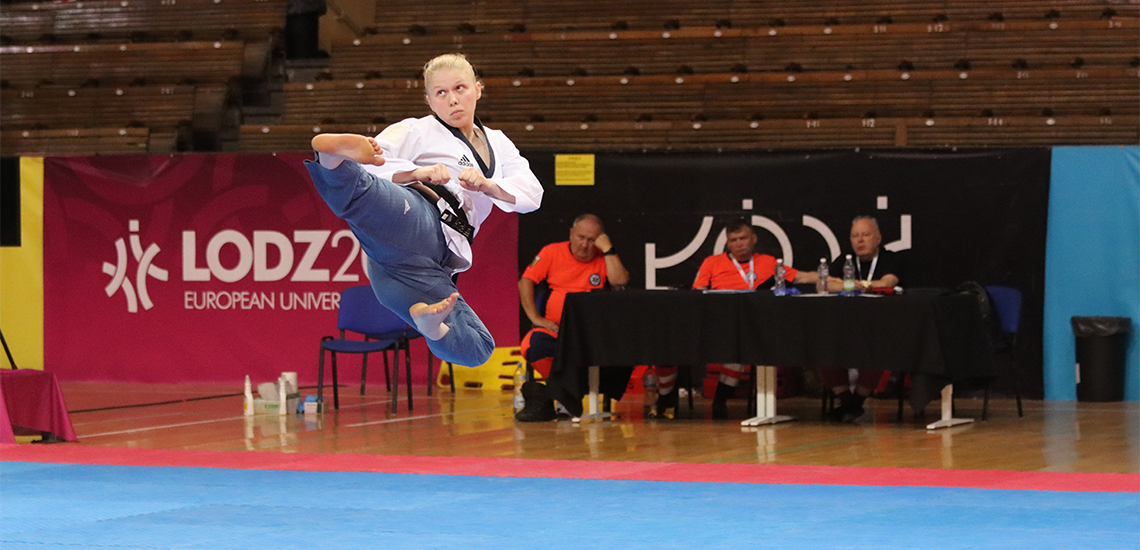 Am ersten Wettkampftag starteten fünf Taekwondoin in der Disziplin Poomsae und feierten mit vier Medaillen einen mehr als gelungenen Auftakt. Für den größten Jubel sorgte Leah Lawall von der Uni Mainz, die sich mit einer ausdrucksstarken Performance Gold sicherte. Auch bei Trainer Taoufik Skandrani war die Freude nach dem Sieg groß: „Erster Tag, erstes Gold – so kann es in den nächsten Tagen gerne weitergehen.“ Als zweite deutsche Starterin belegte Julia Dunkel (Uni Kassel) Platz acht. Bei den Herren konnte sich zudem Manuel Krischke (Uni Kassel) über die Bronzemedaille sichern.