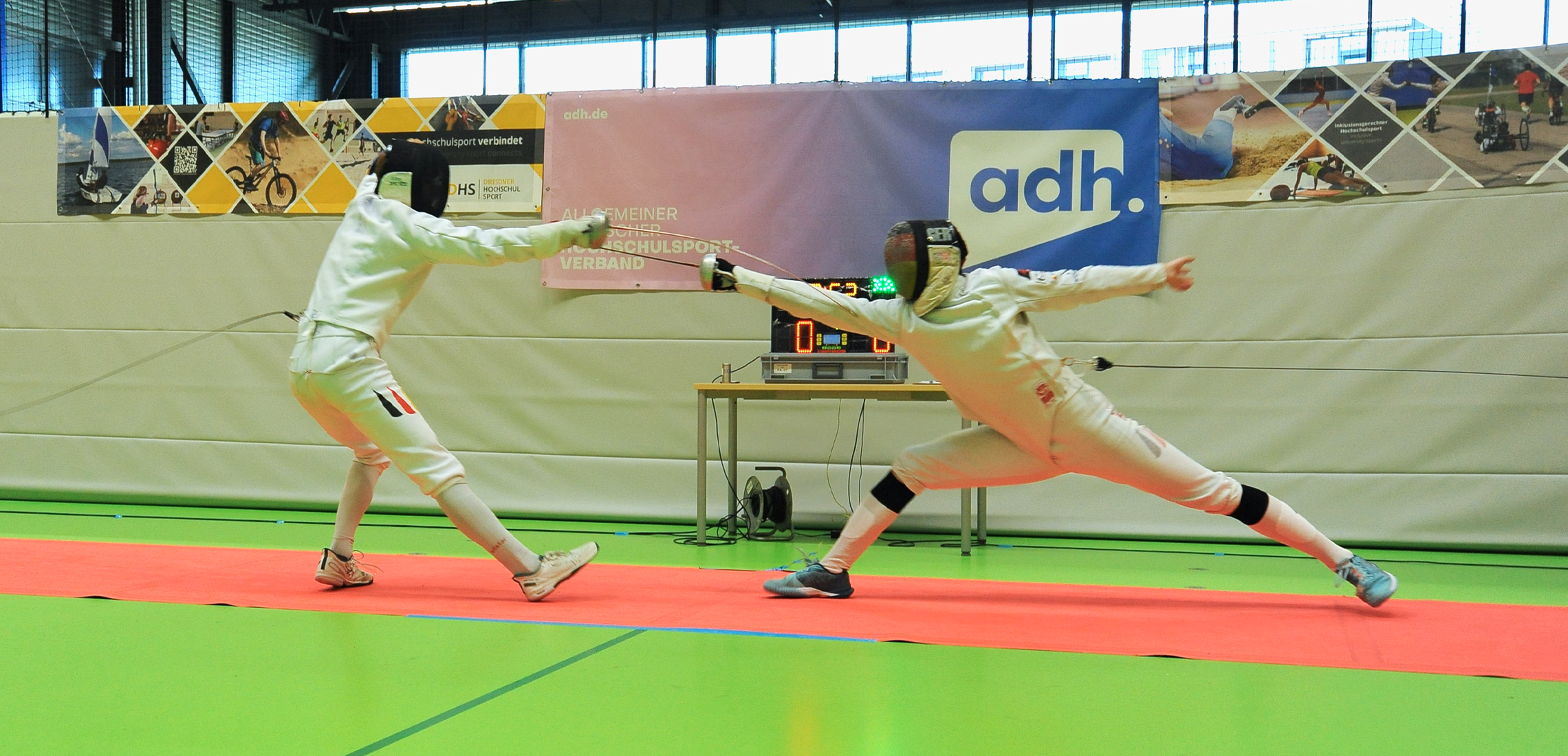Ausgerichtet vom Hochschulsportzentrum Dresden (DHSZ) fand in der sächsischen Landeshauptstadt die Deutsche Hochschulmeisterschaft Fechten im Team (28./29. Juli) statt. In den modernen Hallen der TU Dresden wurden unter besten Bedingungen fast 250 Mannschaftsgefechte ausgetragen. „Dresden hat diese Hochschulmeisterschaften perfekt organisiert“, lobte adh-Disziplinchef Robert Schmier das Ausrichterteam. „Das Deutsche Hochschulfechten freut sich bereits auf 2029, wenn hier die Multisport-DHM stattfindet – Dresden ist bereit!“