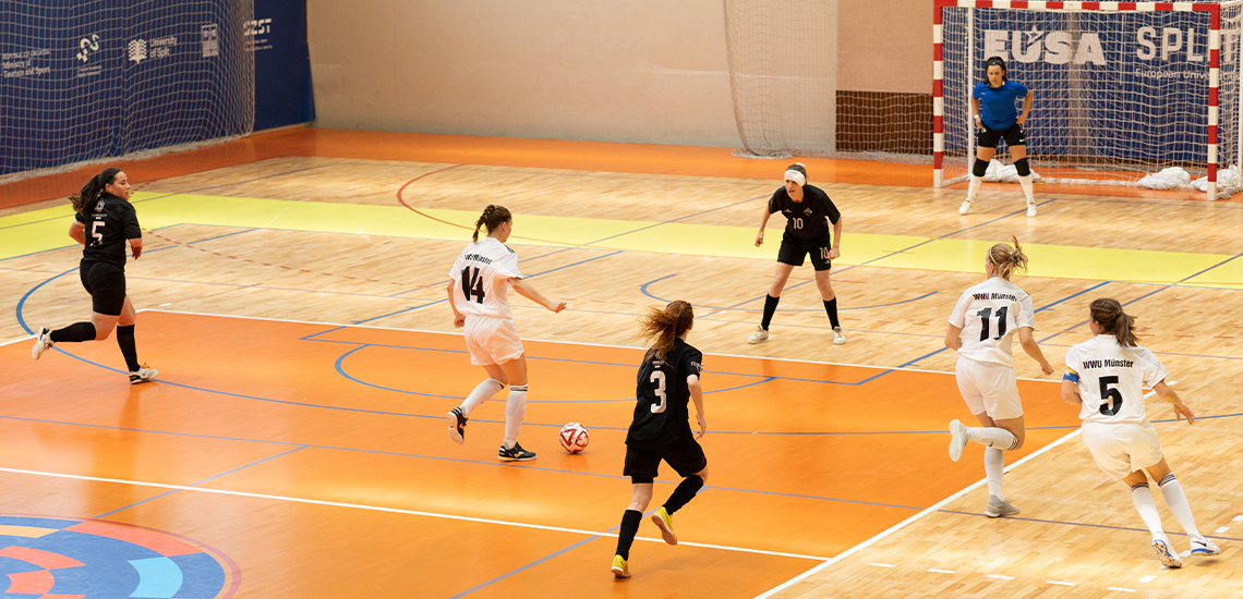 An diesem Wochenende findet die Deutsche Hochschulmeisterschaft Futsal Frauen in Münster statt. Da die Titelverteidigerinnen aus Nürnberg diesmal nicht dabei sind, geht die Wettkampfgemeinschaft Münster als klarer Favorit ins Heimturnier. Im vergangenen Jahr nahm das Team zudem als einzige deutsche Mannschaft an den European University Championships im kroatischen Split teil (Platz acht). Jetzt gilt es, den Titel vor heimischer Kulisse nach 2022 zurück nach Münster zu holen.