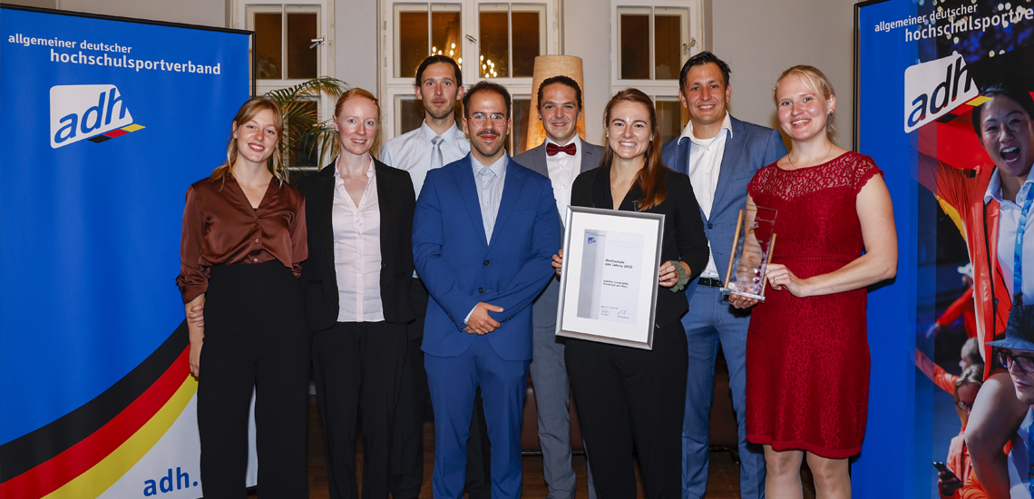 Neben der Vielfalt und Qualität des klassischen Sport- und Bewegungsangebots für die Hochschulangehörigen hob Laudator Dr. Arne Göring (Hochschulsportleiter der Uni Göttingen) insbesondere die vielfältigen Aktivitäten des Hochschulsports im Bereich Gesundheitsförderung hervor. „Neben der Entwicklung innovativer Event-Formate zur Förderung der sozialen Bindung Studierender beteiligt sich der Hochschulsport mit seinem Projekt „Active Movement Break“ erfolgreich an der Initiative „Bewegt studieren – Studieren bewegt! 2.0”. Damit zählt er bundesweit zu den Vorreitern in der hochschulischen Gesundheitsförderung“, so Göring.