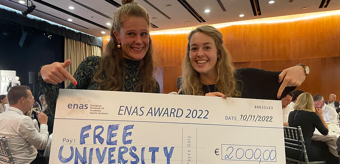 Der mit 2.000 Euro dotierte Preis wird an besonders innovative und für den europäischen Hochschulsport relevante Ideen vergeben. Der UniSport-O-Mat der Freien Universität, der im Rahmen des Projekts „Bewegt studieren - Studieren bewegt! 2.0" entstanden ist, setzte sich gegen die Projekte der University of Leicester und der Vilniaus Universitetas durch.