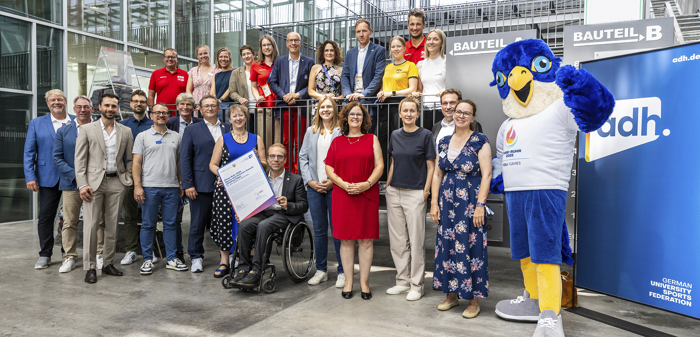 FISU-Präsident Leonz Eder unterstrich: „Ich bin sowohl dem adh als auch der Staatskanzlei des Landes Nordrhein-Westfalen sehr dankbar für die Initiative, dem Thema Inklusion in seiner vollen Dimension eine Plattform errichtet zu haben, welche hoffentlich weit über die Rhine-Ruhr 2025 FISU World University Games Summer hinaus Wirkung entfalten wird. Damit unterstützen sie die Bemühungen der FISU, die Parasportarten erstmals im Rahmen der Winterspiele 2025 in Turin eingeführt hat. Inklusion bedeutet für die FISU unter anderem auch, dass die Parasportarten in die jeweiligen FISU Games integriert und nicht in separaten Events organisiert werden. Dies ist mit 3x3 Rollstuhlbasketball hier der Fall."