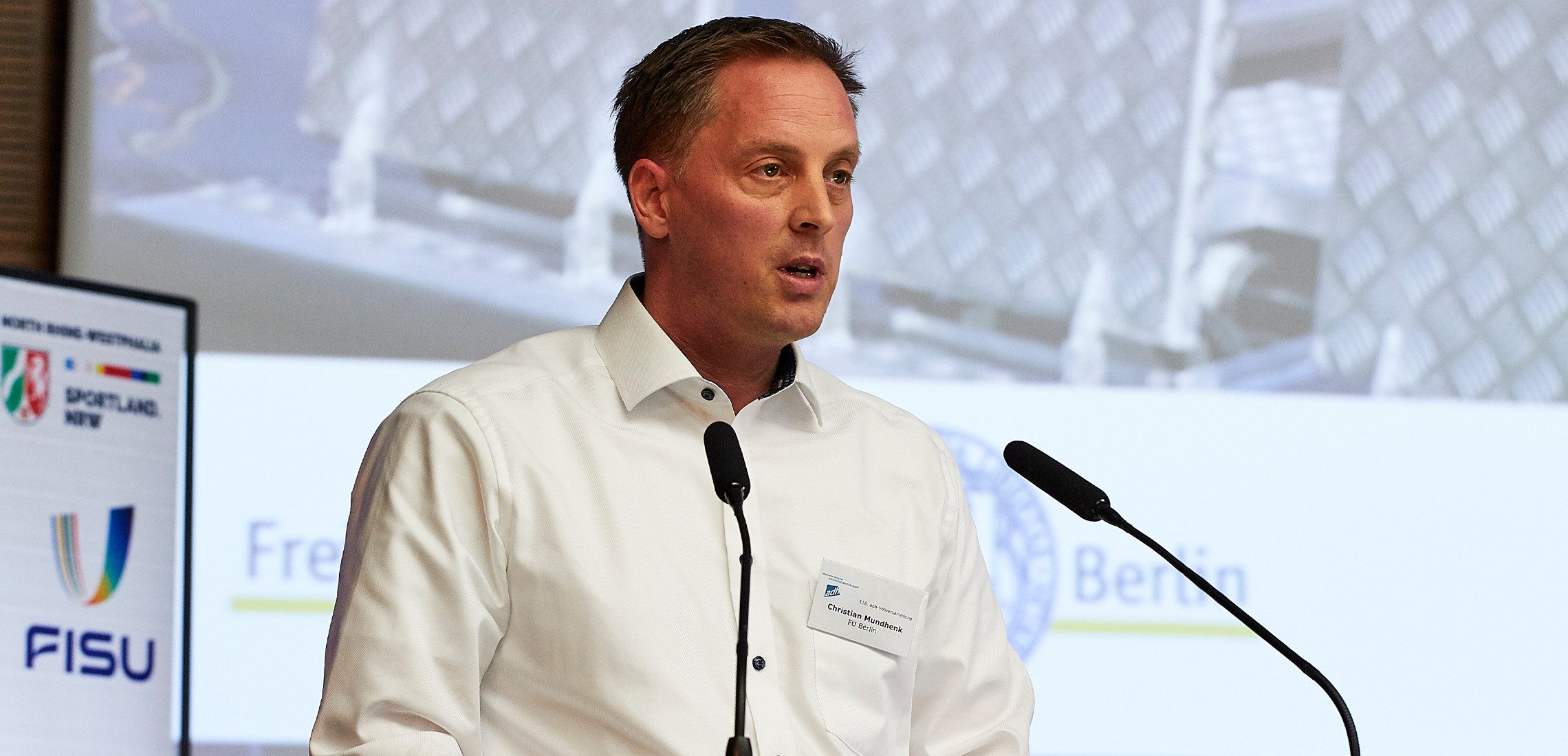 Benjamin Schenk vom adh bedankte sich im Rahmen der Versammlung herzlich bei den Mitgliedseinrichtungen für ihre wertvolle Unterstützung bei den Rhine-Ruhr 2025 FISU World University Games im Sommer sowie für das Engagement in zahlreichen bundesweiten Hochschulsportprojekten.
