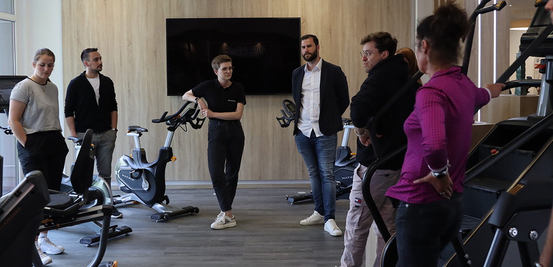 Zum Abschluss des Tages führten Frieda Kosel (Produkt Managerin Matrix) und Fabian Kleinert (Vertriebsmitarbeiter Matrix) die Gruppe durch den Showroom. Die Teilnehmenden hatten nicht nur die Möglichkeit sich über neueste Produkte und Innovationen auf dem Fitnessmarkt zu informieren, sondern diese auch gleich zu testen, auszuprobieren und Fragen zu stellen.