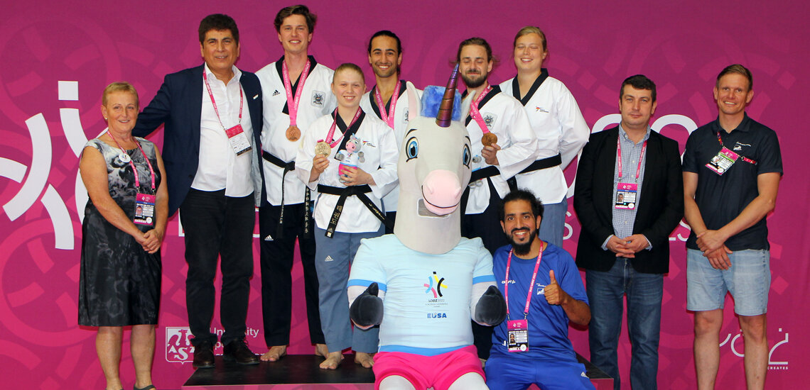 (28.07.2022) Am dreizehnten Wettkampftag der European Universities Games (EUG) konnten die deutschen Aktiven mit zehn Podestplätzen (einmal Gold, dreimal Silber, sechsmal Bronze) im Taekwondo, Schwimmen und Sportklettern ihre Edelmetall-Ausbeute klar ausbauen.
