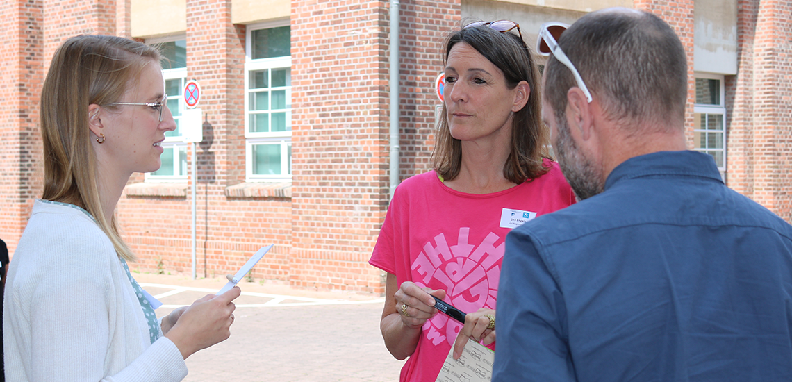 Nach einer Vorstellungsrunde der Patinnen und Paten sowie der Seminarleitung Linda Kiefhaber, Lisa Jung (beide adh) und Dr. Brigitte Steinke (externe Beraterin im Auftrag der TK) startete das Treffen mit einem Rückblick auf die Inhalte der vergangenen beiden Seminare. Bei einem Walk and Talk konnten die Patinnen und Paten sich anschließend in zwei Runden zu ihrer Patenschaft austauschen. Es ging in den Gesprächen vor allem um die Kommunikationswege, verschiedenen Rituale, die Rolle als Patinnen und Paten sowie um die Erfahrungen mit dem Entwicklungs- und Reflexionsinstrument. Das Ziel war, voneinander zu lernen und gemeinsam neue Ideen zu erarbeiten.