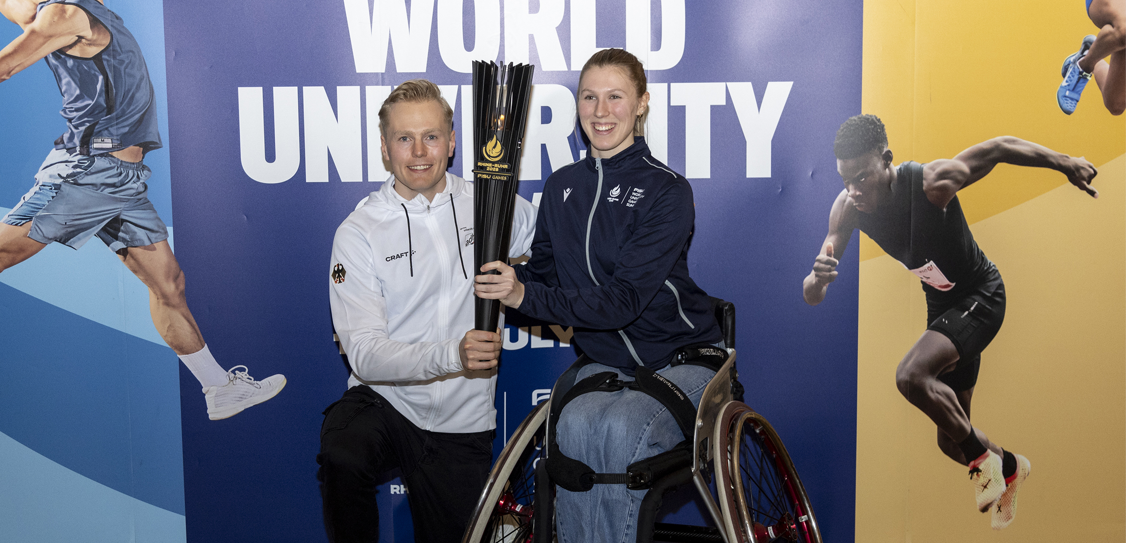 Wenn die Rhine-Ruhr 2025 FISU World University Games beginnen und das zwölftägige Sportfestival seinen Lauf nimmt, wird auch die offizielle Flamme der Spiele brennen. Im Rahmen der Winter Games in Turin wurde die Fackel von Skilangläufer Marius Bauer, der dort gerade die Goldmedaille gewann, entzündet und unter anderem an FISU-Präsident Leonz Eder übergeben - ein Fackellauf wird den Geist der Spiele repräsentieren und an mehreren Stationen in Deutschland Halt machen.
