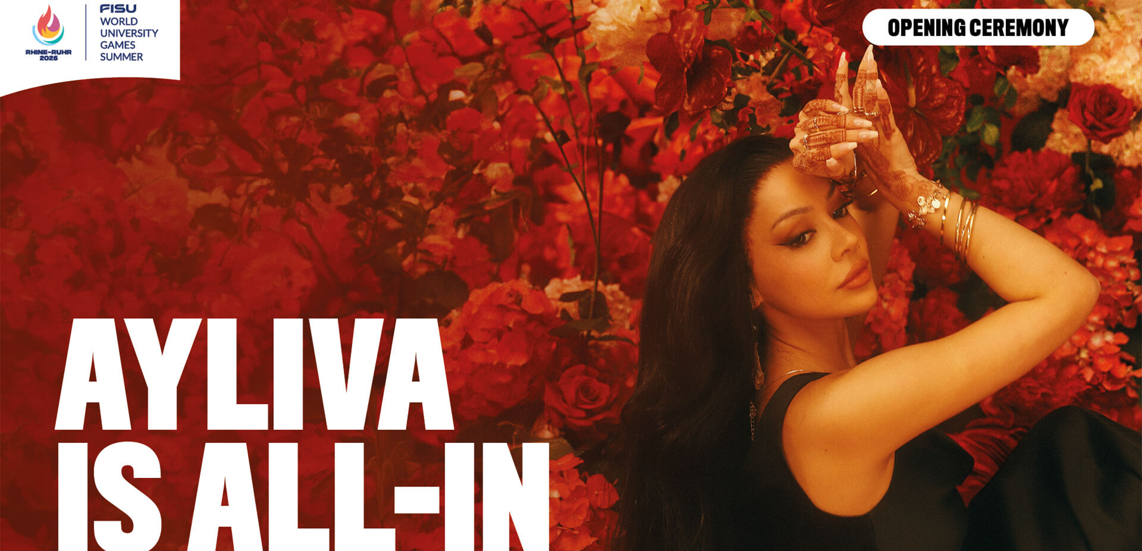 Ayliva ist der Shootingstar der deutschen Musikszene. Ihre letzten beiden Alben kletterten auf die Nummer eins der Charts und ihre Konzerte sind reihenweise ausverkauft. Als gebürtige Recklinghäuserin passt die 26-Jährige zudem perfekt zu den Rhine-Ruhr 2025 FISU World University Games. „Ich freue mich riesig darauf, die Eröffnungsfeier in meiner Heimatregion musikalisch mitzugestalten und Menschen aus aller Welt zusammenzubringen“, erklärte Ayliva. Weitere Künstlerinnen und Künstler, die bei der Eröffnungsfeier jeweils vom WDR Funkhausorchester begleitet werden, werden noch bekanntgegeben.