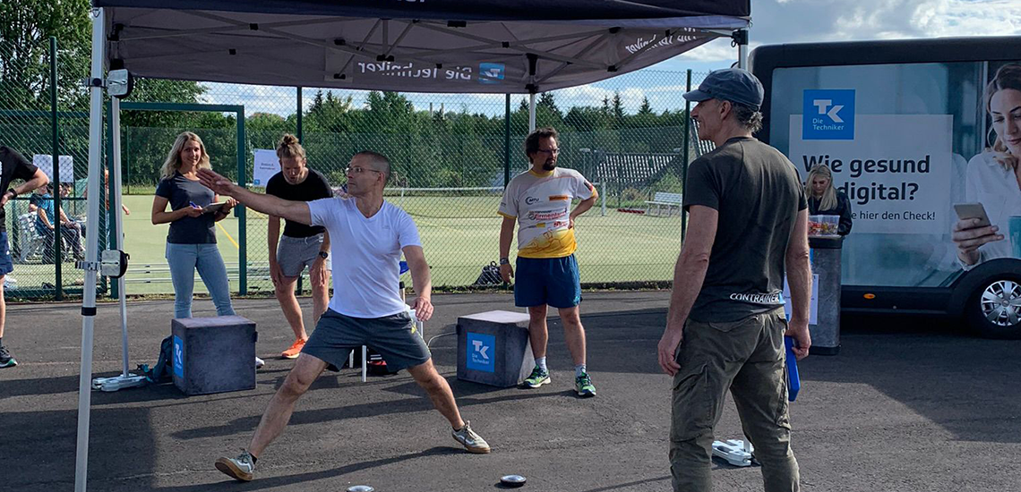 Aber nicht nur der Sport stand im Fokus bei diesem Fest, sondern auch die Gesundheit. Durch einen Erfolg beim IDUS Lauf am 20. September 2022 und ein glückliches Los, war die Techniker Krankenkasse (TK) ebenfalls vor Ort und bot einen Gesundheitstag an. Die Experten der Krankenkasse haben ein Screening organisiert, bei dem der Zustand des Körpers analysiert wurde. Das sollte den Teilnehmenden einen Überblick über die Ernährungsweise bieten und Grundlage für eine persönliche Beratung. Der Hingucker der Krankenkasse war jedoch die Lichtwand, bei der Reaktionsfähigkeit, Geschwindigkeit und Koordination auf die Probe gestellt wurden. Wahllos leuchtete ein Licht auf, das die Besucherinnen und Besucher ausschalten mussten. Die Aktion hat Motivation zur Bewegung und Ehrgeiz von Studierenden und Mitarbeitenden gleichermaßen geweckt, die gegen die Zeit, miteinander und gegeneinander angetreten sind. „Die Kombination aus Sport, Spaß an Bewegung und Gesundheit ist bei diesem Event einfach super umgesetzt. Das ist der richtige Ansatz für einen aktiveren Alltag,“ so Aline Witzke, Hochschulberaterin von der TK. Der Gesundheitstag ist eine enorme Bereicherung für das Sommersportfest und ein nachhaltiges Beispiel, wie der Hochschulsport als Akteur für einen gesünderen, bewegteren Studien- und Arbeitsalltag beitragen kann.