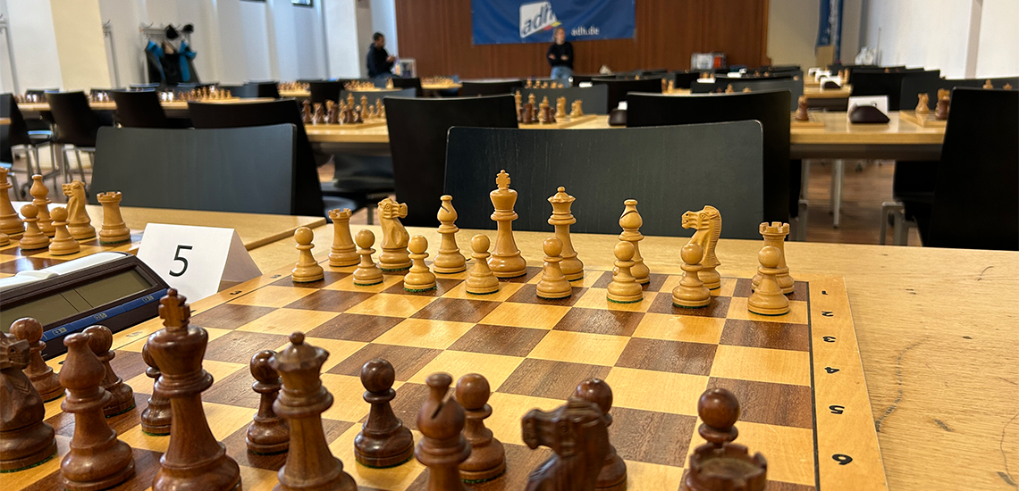 Erstmals seit 2016 konnte im Rahmen des adh-Wettkampfprogramms wieder eine adh-Open Schach ausgetragen werden. Schauplatz des lang ersehnten Schnellschach-Turniers war das Jakob-Wilhelm-Grimm Zentrum an der HU Berlin, welches als Bibliothek dem denksportlichen Wettkampf ein imposantes Ambiente verlieh. Die Veranstaltung lockte 82 Teilnehmende von 16 Hochschulen an, die sich in sieben aufeinanderfolgenden Partien im Schweizer System miteinander messen konnten.