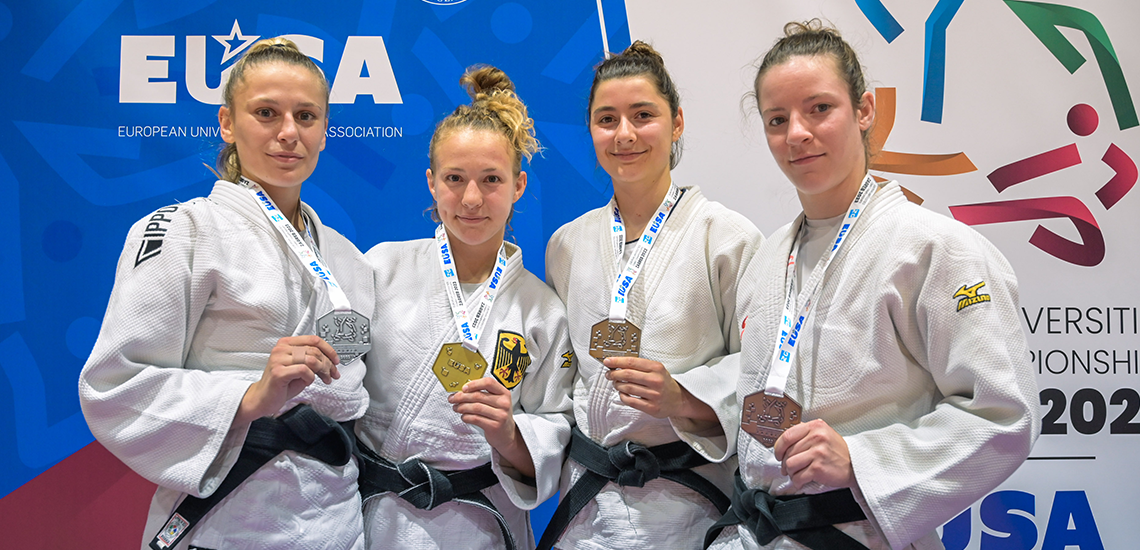 Die deutschen studentischen Judoka erlebten bei den Europäischen Hochschulmeisterschaften in Zagreb erfolgreiche Wettkampftage. In der Gewichtsklasse bis 57 Kilogramm sicherte sich Jana Ziegler von der Universität Potsdam die Goldmedaille. In einem spannenden Finale setzte sich die Deutsche im Boden gegen Andela Samardzic aus Bosnien und Herzegowina durch. „Im Finale des European Cups in Sarajevo in diesem und im vergangenen Jahr, zog ich gegen Samardzic jeweils den Kürzeren. Umso mehr habe ich mich gefreut, dass ich gegen sie gewonnen habe“, blickte die frischgebackene Studentin-Europameisterin auf die Entscheidung zurück. Ebenfalls Edelmetall in der Klasse bis 57 Kilogramm holte Sophie Püchel von der Deutschen Sporthochschule Köln. Sie gewann ihr kleines Finale gegen Mila Petrovic ebenfalls aus Bosnien und Herzegowina. Im Boden setzte sich die Kölnerin in der regulären Kampfzeit durch und sicherte die zweite Medaille für die Judoka der deutschen Hochschulen.