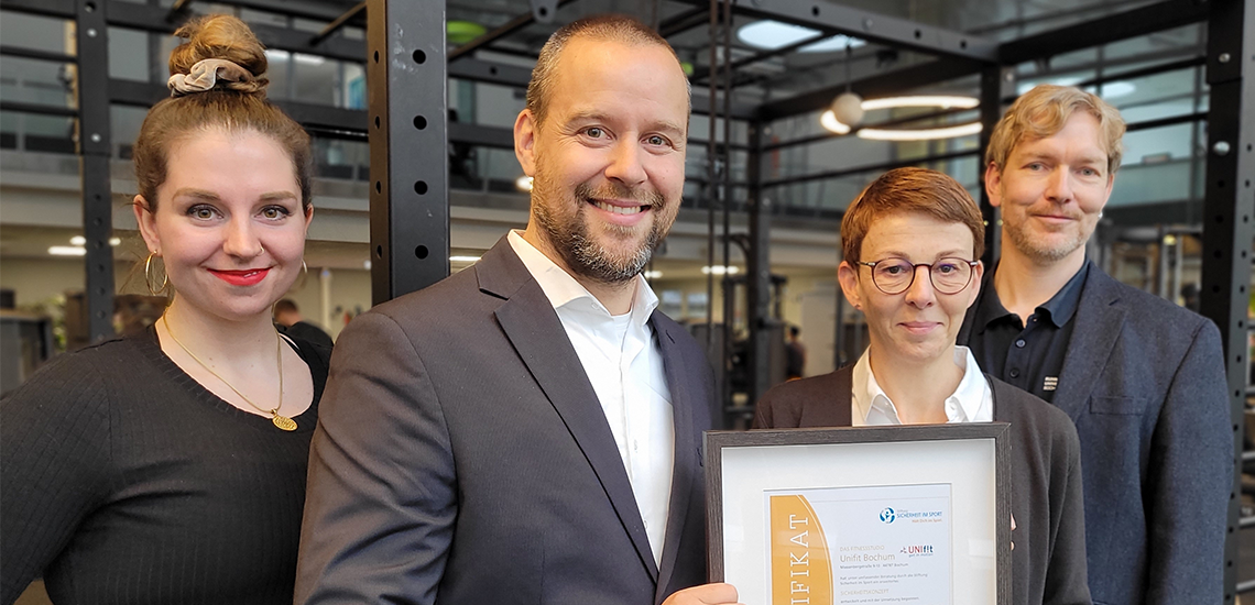 Am 5. Dezember ist die Zusammenarbeit (zunächst) erfolgreich vollbracht. Dann erhält das Unifit die Urkunde über die erste Zertifizierungsstufe. Zeit zum Verschnaufen bleibt jedoch kaum, denn in den folgenden Wochen und Monaten gilt es, das Konzept zu installieren und zusammen mit allen Akteurinnen und Akteuren umzusetzen – sprich: nachhaltig mit Leben zu füllen. „Erster Schritt wird die spezifische Schulung und ergänzende Unterweisung unserer Trainerinnen und Trainer sowie der Mitarbeitenden sein. Wir freuen uns sehr darauf, dass auch der weitere Prozess durch die Stiftung Sicherheit im Sport begleitet wird“, meint Stefan Bertling, Leiter des Unifit. Denn das ist Voraussetzung für die zweite Stufe der Zertifizierung zum „Sicheren Fitnessstudio“, die der Hochschulsport Bochum für seine über Tausend Trainierenden erreichen möchte.