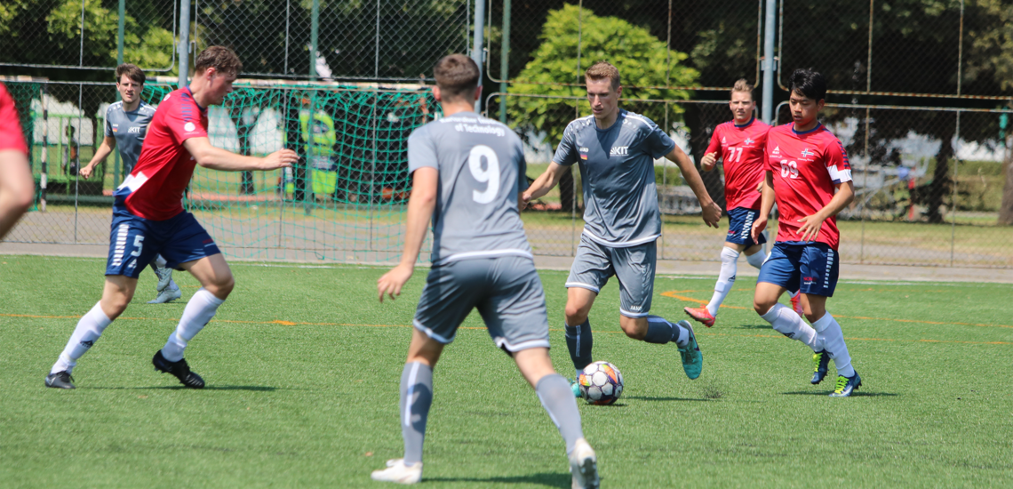 Auch die Männer vom KIT siegten gegen die Uni Bergen (Norwegen) mit 2:0, mussten aber den Verlust von Kapitän Marcel Heller beklagen, der mit einer Platzwunde ins Krankenhaus musste. Beide Teams qualifizierten sich damit für das Viertelfinale, das nach einem Ruhetag am Montag (15.07.) ausgetragen wird.