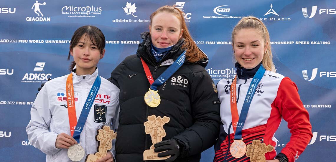 Zweites Rennen, zweite Medaille – die Bilanz von Lea-Sophie Scholz (HU Berlin) bei dieser WUC kann sich mehr als sehen lassen. Nach Silber über die 1.000 Meter holte die 22-Jährige Gold im 1.500 Meter-Rennen. Mit einem neuen Bahnrekord (2:09,22 Minuten) setzte sich Scholz gegen Yuka Takahashi (Japan) durch, gegen die sie am ersten Tag noch den Kürzeren gezogen hatte. Veronika Antosova sicherte sich Bronze.