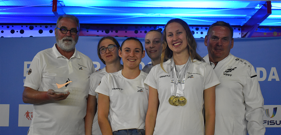 Zwar reichte es für Josefine Tesch (FU Berlin), Franca Richter und Nina Kohler (beide Uni Leipzig) nicht für den Sprung aufs Treppchen, was Johanna Schikora (HU Berlin) aber stellvertretend und in beeindruckender Weise für das ganze Team übernahm. Als Teil der absoluten Weltspitze und Titelträgerin bei Welt- und Europameisterschaften zählte die 22-jährige Psychologie-Studentin von Beginn zum Kreis der Favoritinnen. Dass sie aber im Flossenschwimmen über 200, 400 und 800 Meter zu Gold schwamm und dabei zwei neue FISU Rekorde (über 200 und 800 Meter) aufstellte, übertraf die kühnsten Erwartungen. Damit hatte sie einen wesentlichen Anteil am guten Abschneide des Teams und dem dritten Platz im Medaillenspiegel.